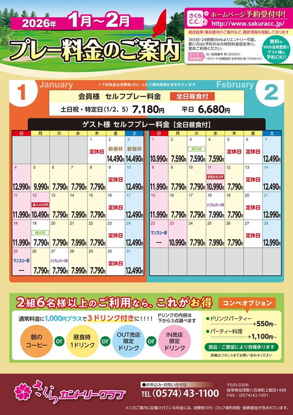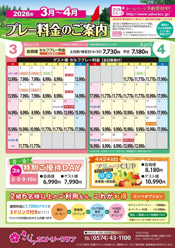 プレー料金のご案内